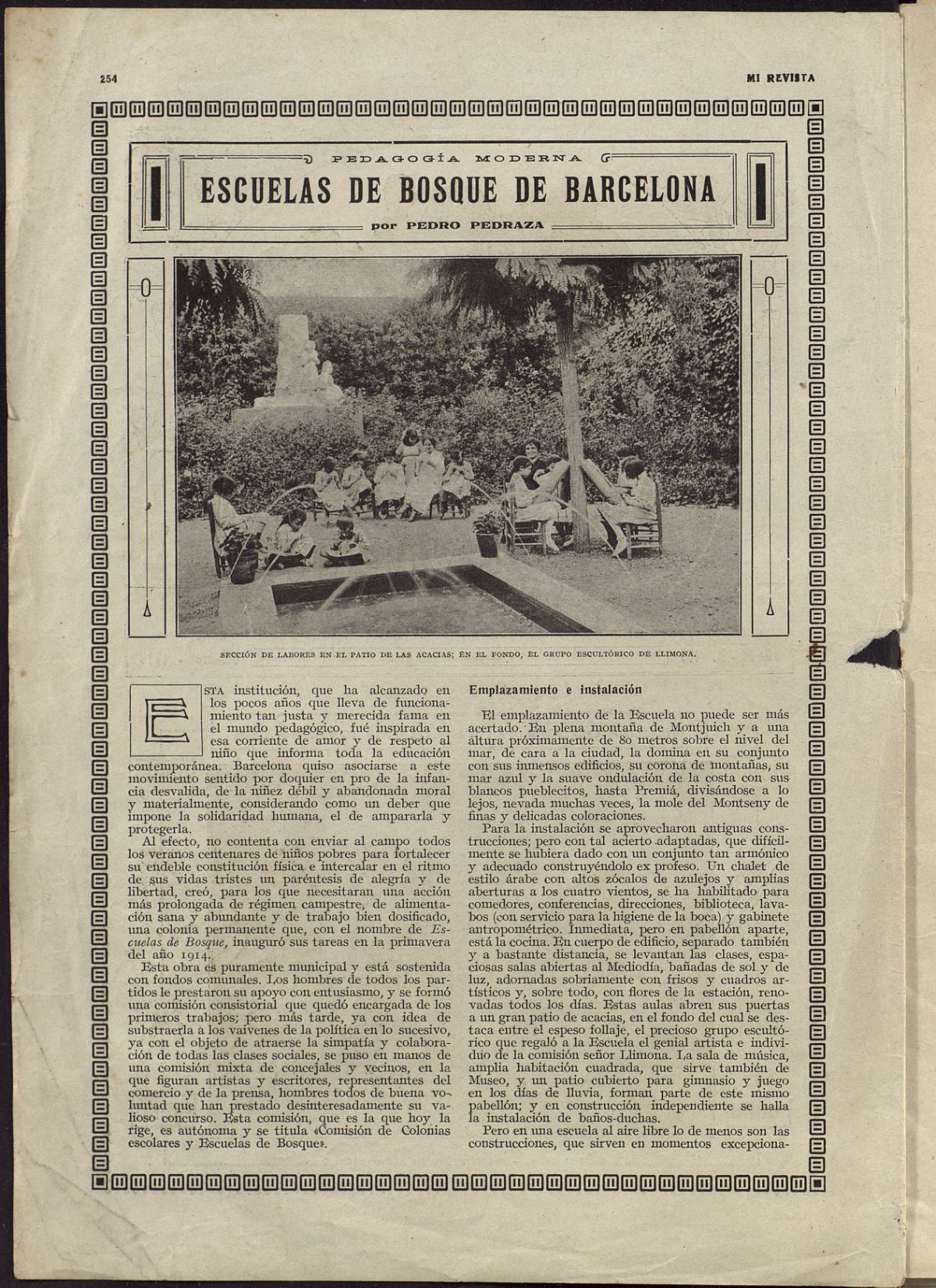 «En una escola on es pretén dur a terme una obra d’educació natural activa, el menys important són els edificis i el que ho és més és el camp. Les visites i les excursions han anat encaminades ben sovint a la formació del sentit estètic.»