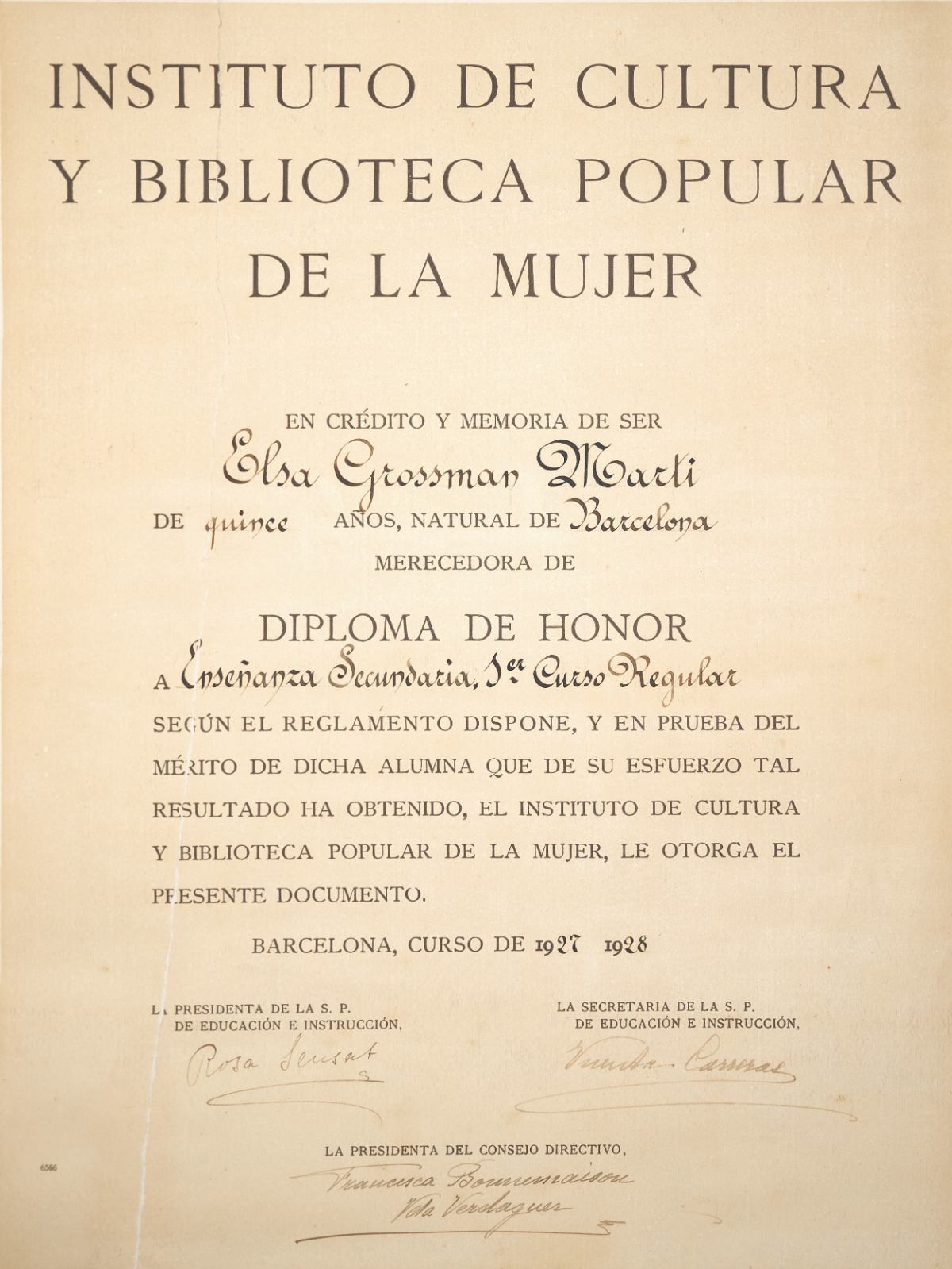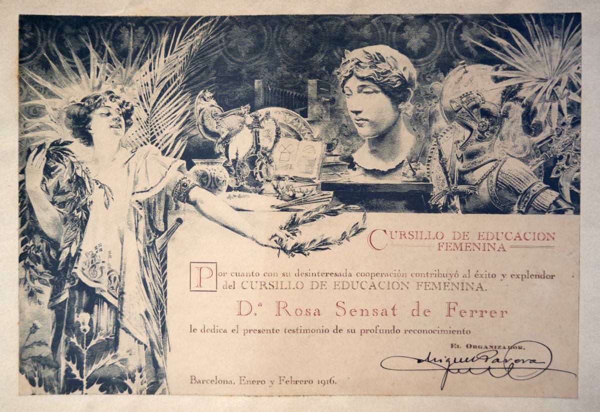 Diploma signat per Rosa Sensat, curs 1927-1928. APRS