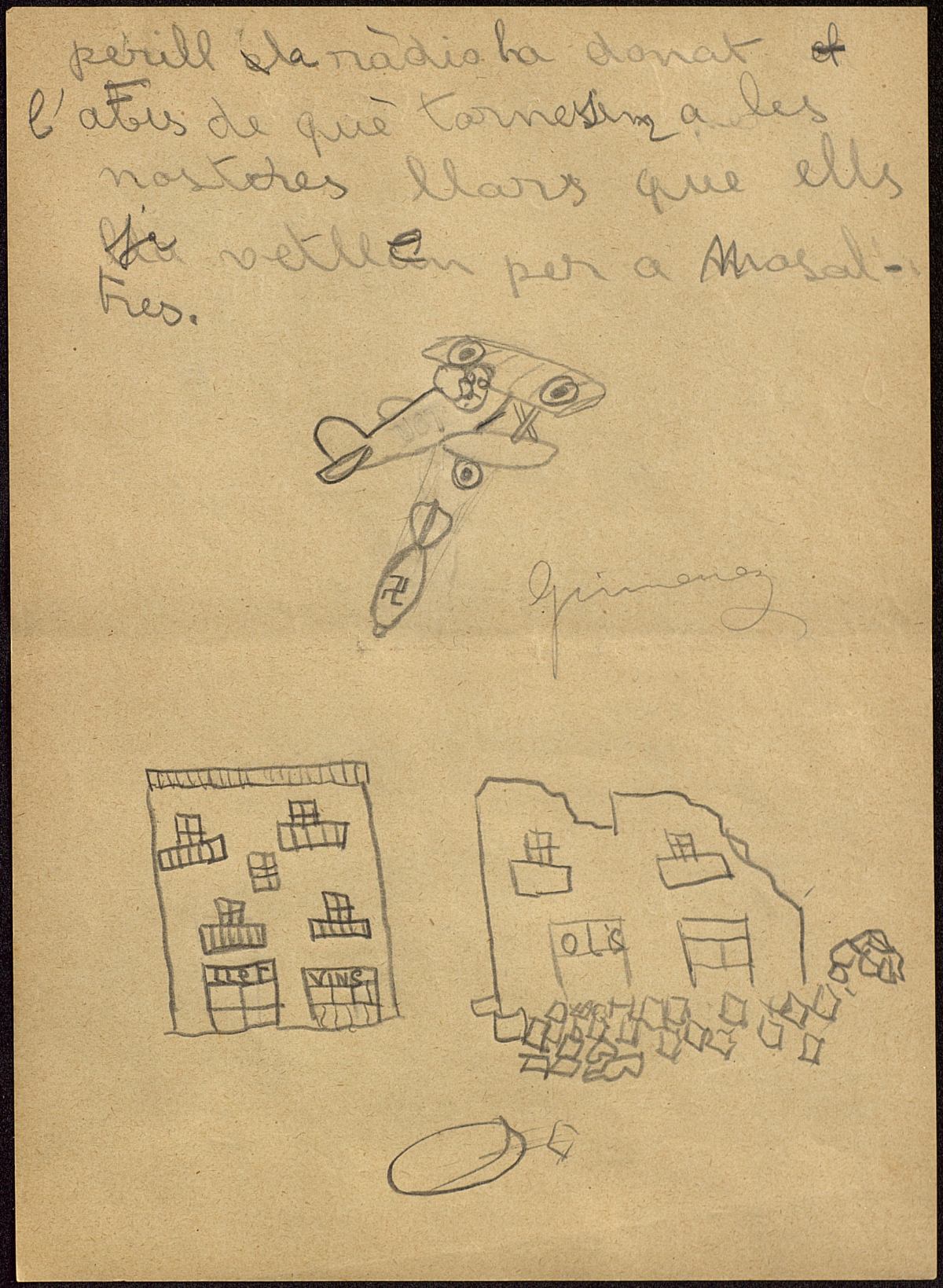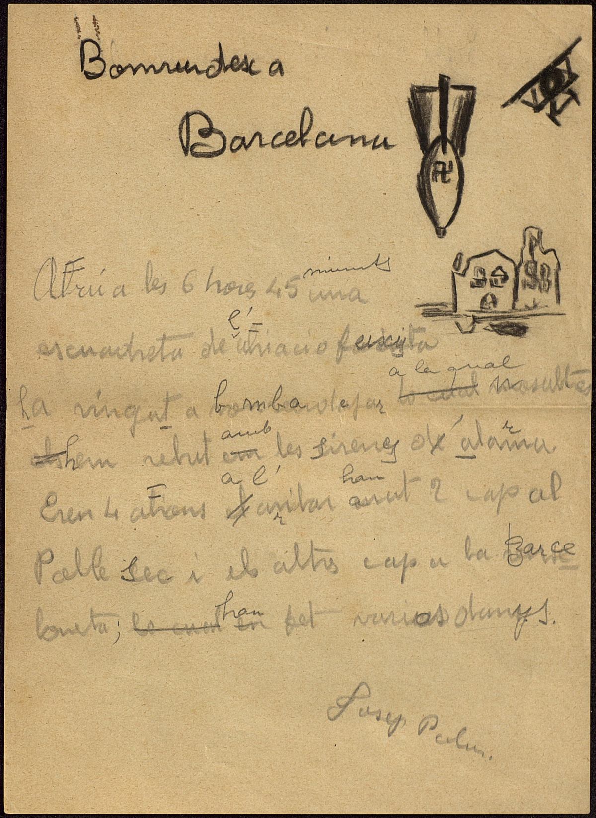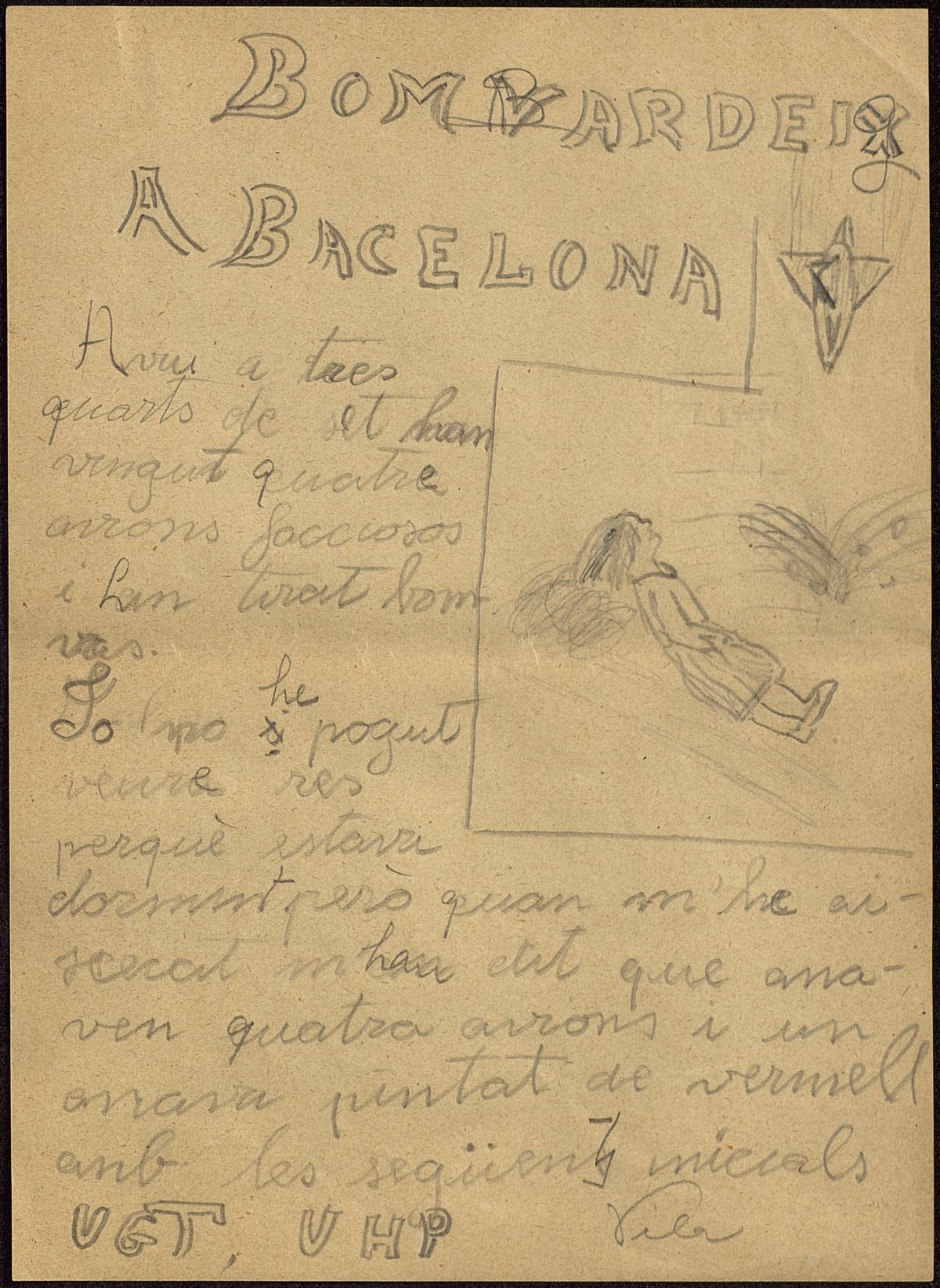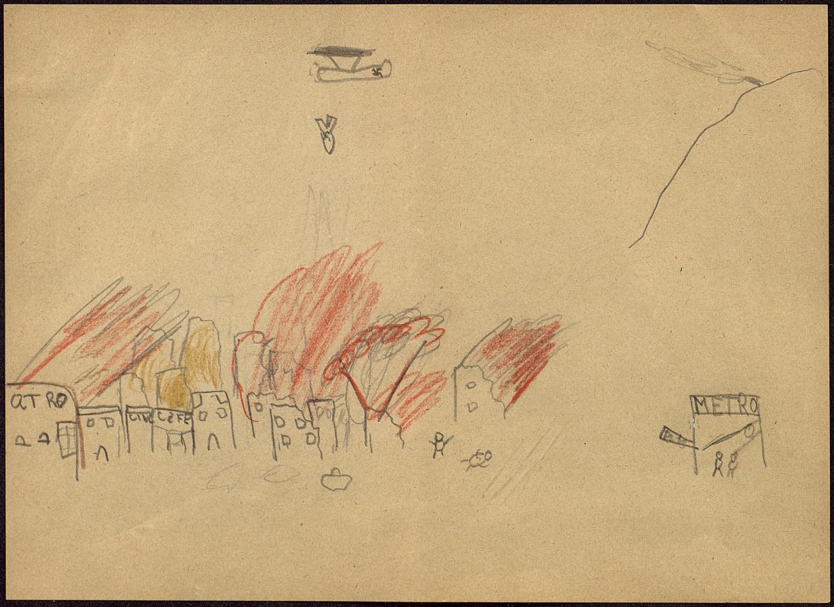 Redaccions i dibuixos del bombardeig de març de 1937 fets pels alumnes del Milà i Fontanals. APRS